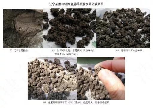 使用本品干化泥浆、岩屑和污泥等,不但干化速度加快,强度增加,另外会大幅稳定重金属,可使其由游离状态的重金属沉淀封裹,达到长期稳定重金属在一定条件下不再返溶的效果。